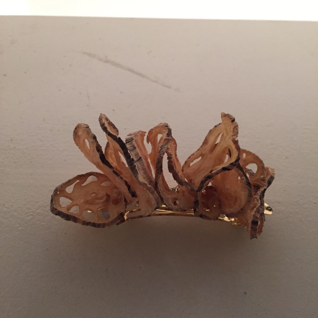 レンコンの自然な歪みを活かした存在感のあるバレッタです。