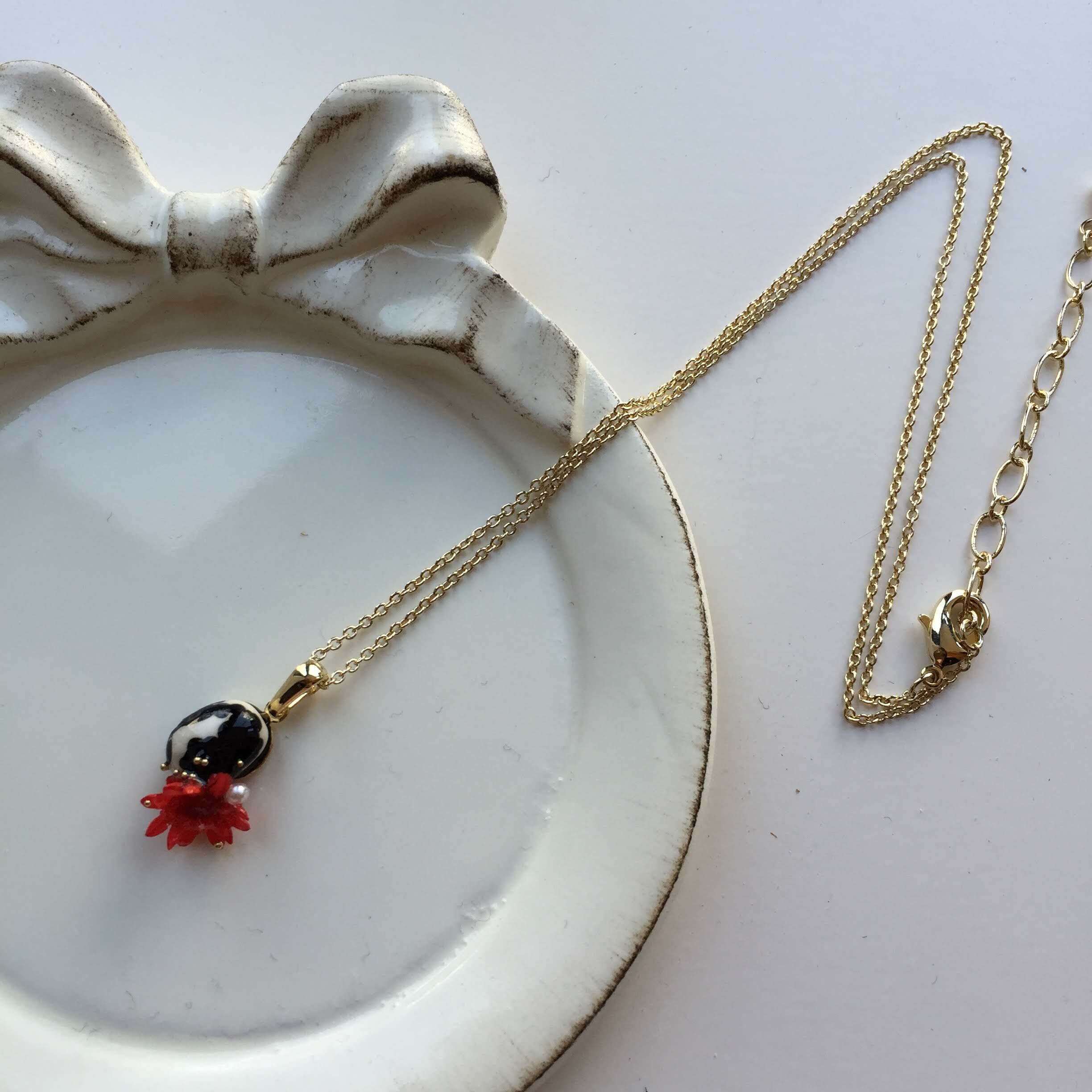 メキシコからやってきた牛柄のお豆とお花のネックレス。